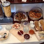 Konuklar kafede sabah yemeklerinin tadını çıkarabilirler. İçecekler meze barında mevcuttur. Şarap barı To rodo kai to aidoni yaklaşık 50 metre uzaklıktadır.